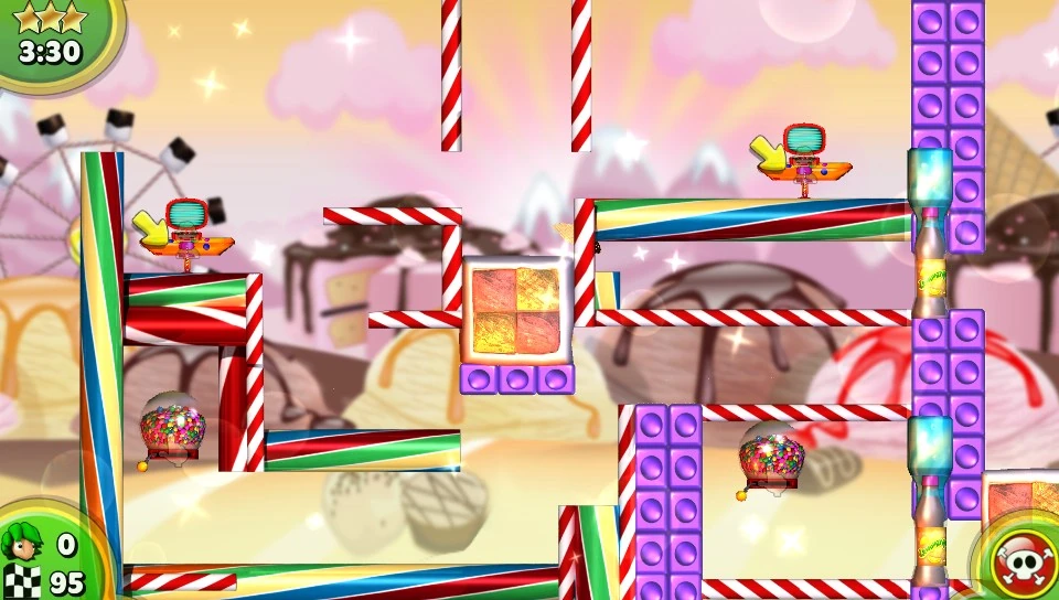 The Builder will reach a perch above the left room. Assign a Climber to any left-facing Lemming on this perch; it will reach a blue switch above. Press this switch's button to open the right room's door. The lone free Lemming will walk past this door, which has a liftable behind it. Lift this liftable upward to reveal a floor below it, which has a gap. Assign two Builder to the Lemming to cross this gap; assign a Basher to it shortly after assigning the second Builder to prevent it from reaching an indestructible wall.