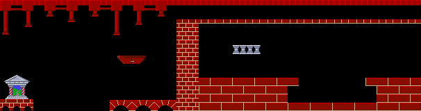 The first lemming must use all five Builder skills to reach the exit to the left, starting from the edge of the platform. In the meantime, make all other lemmings entering the map Climbers. The first Climber to reach the top of the brick wall must mine down to the floating platform when he's standing above it. This will allow your Climbers to survive the fall and walk into a pit that cannot be climbed out of due to its overlapping edges.