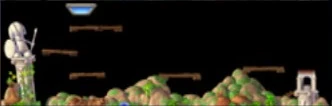 Make a blocker on each of the first two platforms. Put another on the platform with the Spinner Hazard, and one more to keep lemmings from going into the pit at the left. Bomb the right blocker, then repeat this on the platform with the second spinner hazard.