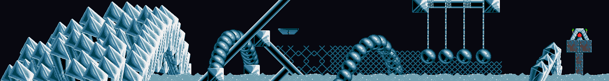 First thing's first: allow the first Lemming to march towards the hanging balls, while the second Lemming becomes a Blocker at the top of the arch (so you can save him later). Using your Trailblazer, you may either use Basher and Builder skills accordingly at the hanged crystal balls, or let him fall between the balls and rely solely on Basher skill. This is a tad trickier, as the holes in the chainlink structure will sometimes make you waste a Basher skill, but you have more than enough.