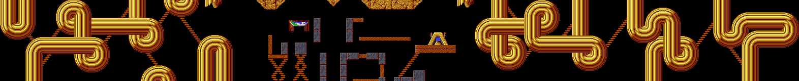 The first Athlete must now build stairs in a zigzag until it is possible for non-Climbers to reach the small wooden ledge. Shortly before it finishes working, raise the release rate to 99 and use a Miner or Digger to break through the bridge holding the other Lemmings back. They should all make it to the exit with seconds to spare.