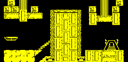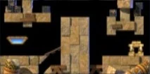 Assign a Miner to the first Lemming to approach the stairs, to reach the platform below. Assign a Blocker to a Lemming at the left edge of this platform to keep Lemmings from walking off the map. Assign a Basher to a Lemming next to the wall. After it is done, assign a Builder to any Lemming to reach the Exit.