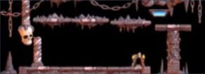 Assign a Miner to the first Lemming as soon as it lands. The tunnel should get deep enough to turn the second Lemming around, but assign a Digger to this Lemming if it walks over it. Assign a Builder to whichever Lemming reaches the pillar's left edge, and assign a Builder to the Miner to stop it from mining. If necessary, assign a Builder to whichever Lemming is directly behind the left Builder to stall it. Assign Floaters to all Lemmings.